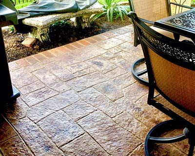 • Conventional paving materials like natural stone, tiles and brick look attractive and are strong and durable; but stamped concrete stands a head above these on all counts. Well-installed, well-sealed and properly stamped concrete can resist moss and mildew, as well as tire marks and oil and rust stains.